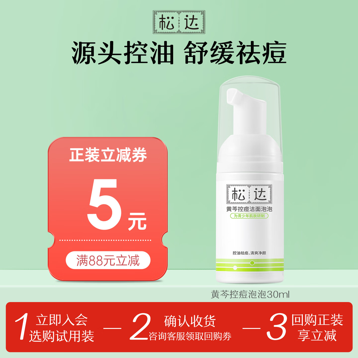 包邮 松达婴儿山茶油霜宝宝身体乳液护肤用品便携装 【便携装】黄芩控痘洁面30ml